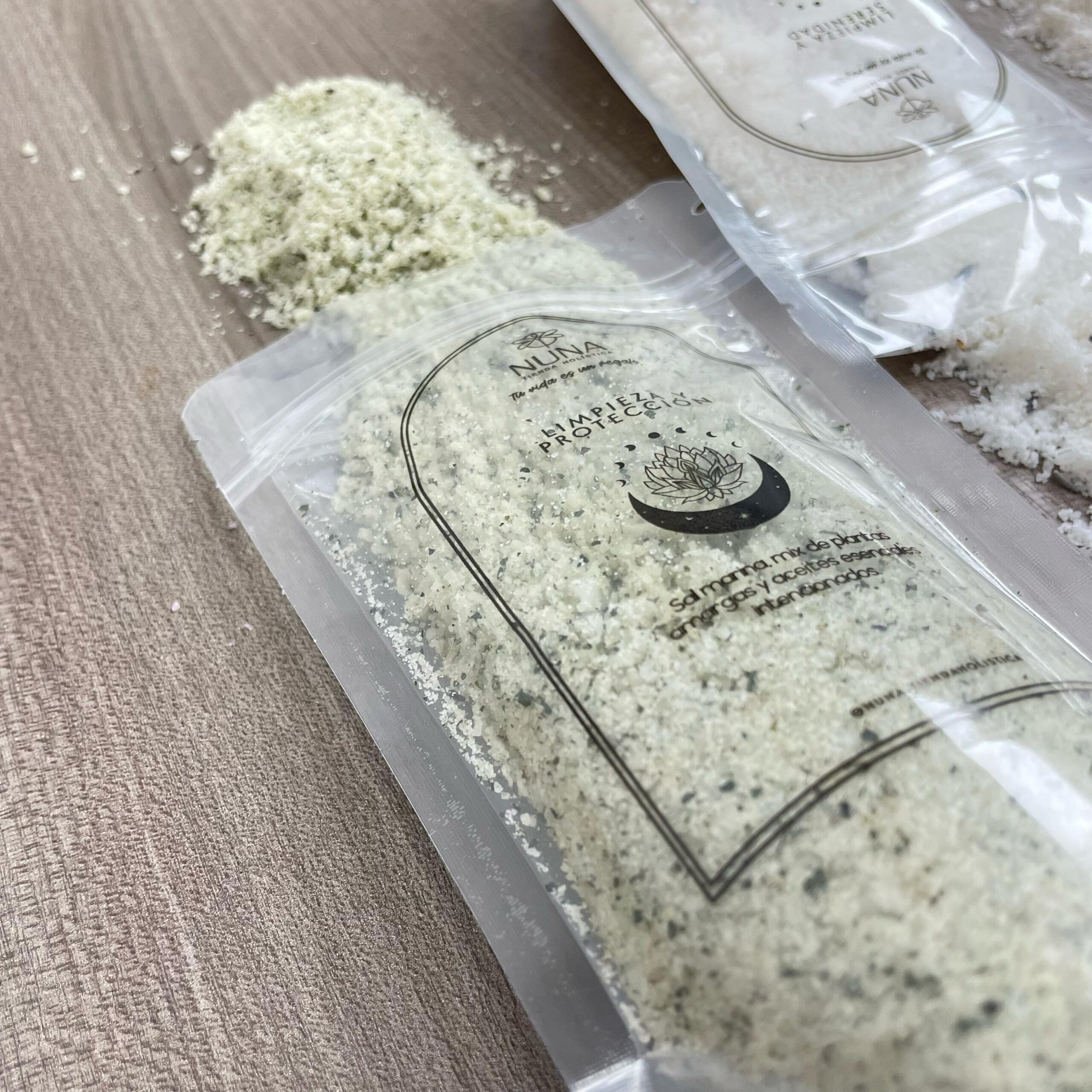 Sal marina, mix de plantas amargas y aceites esenciales intencionados.